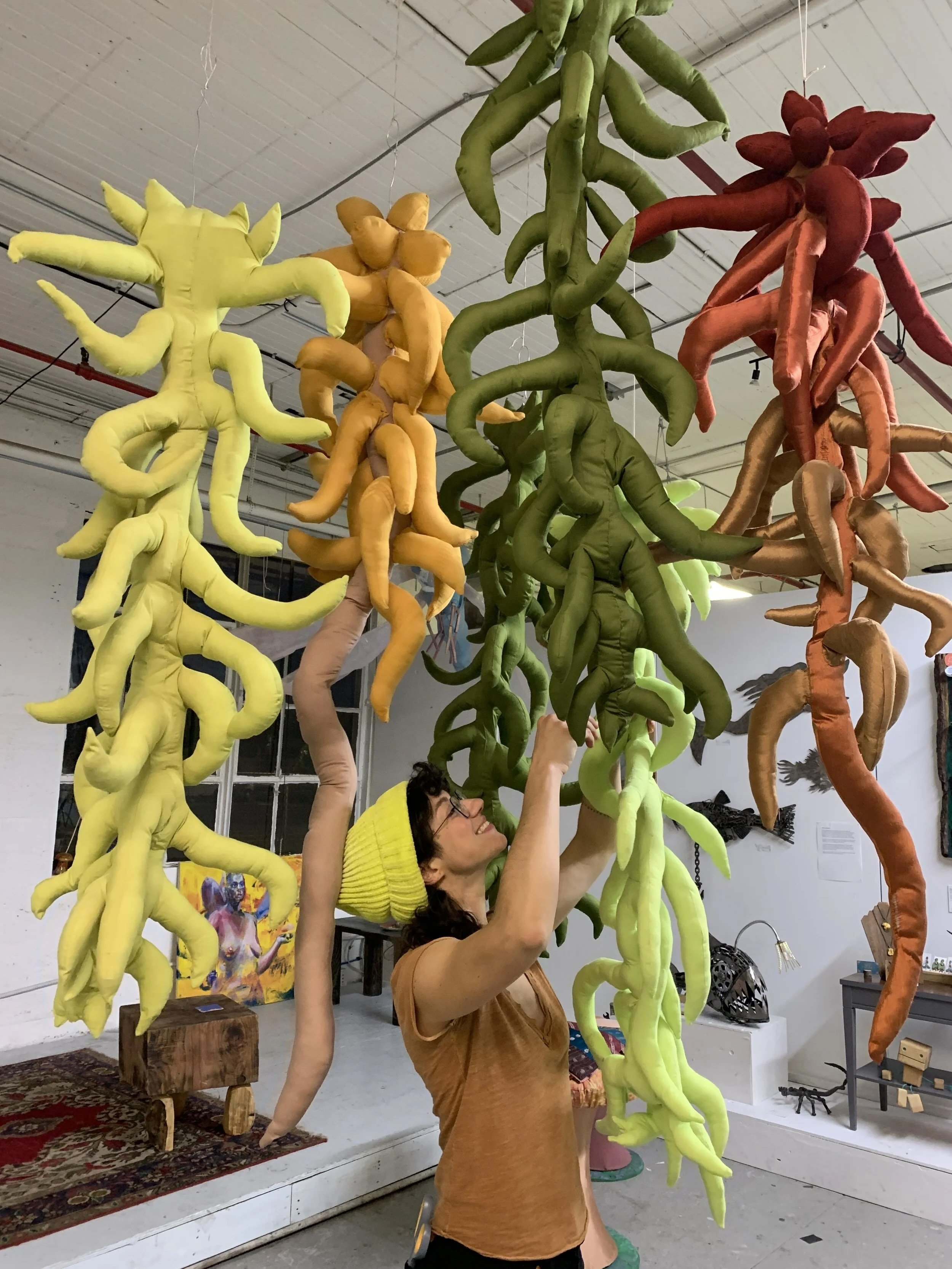 Sphagnum mosses, 2024. Soft sculpture, reclaimed fabrics.