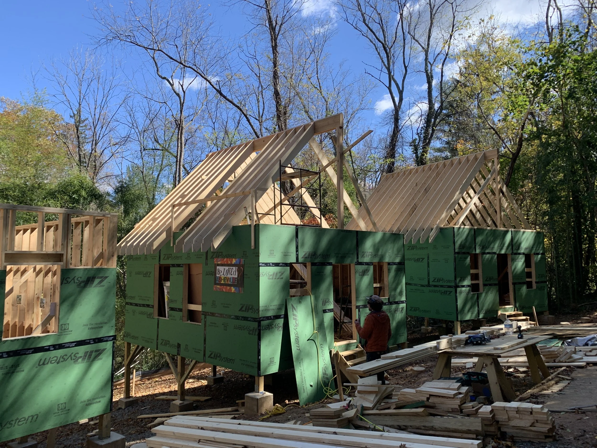 I had the immense pleasure of teaching Sawdust with Kate Hubbel at the Field Center in April 2024. We framed two cabins as a workshop for beginners.